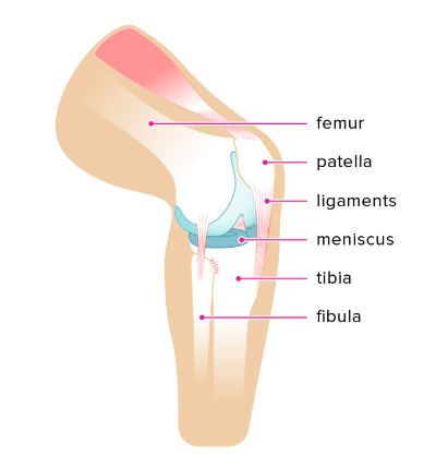 보호하는 볼록한 뼈입니다. 반월상 연골은(memiscus) 정강이