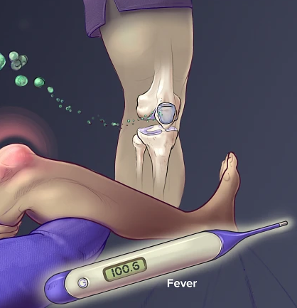 박테리아나 기타 미생물이 무릎 관절을 둘러싸고 있는 섬세한 내벽에 침투하여 관절을 감염시키고 잠재적으로 고름이 차게 만들 수 있습니다.심한 무릎 통증과 발열을 동반한 무릎 부종은 패혈성 관절염의 징후일 수 있습니다. 증상은 몇 시간 또는 며칠에 걸쳐 빠르게 나타날 수 있습니다. 근본적인 감염이 혈류로 퍼지면 생명을 위협할 수 있습니다.환자는 패혈성 관절염으로 인해 증상이 의심되는 경우 즉시 의료 조치를 받으셔야 합니다.