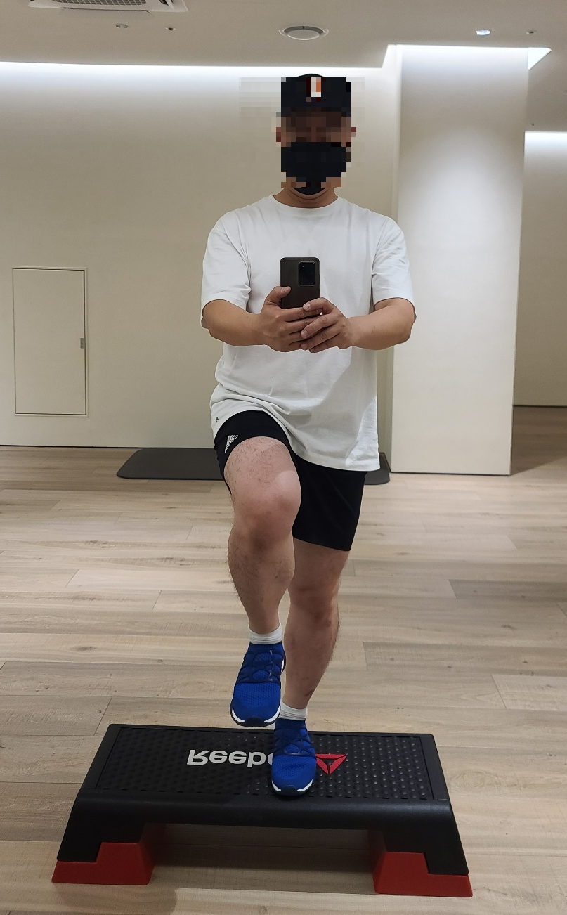 다시 설명드리면 수술한 다리는 스텝박스에 올려놓고 반대쪽 다리는 대각선 바깥쪽에 위치합니다.