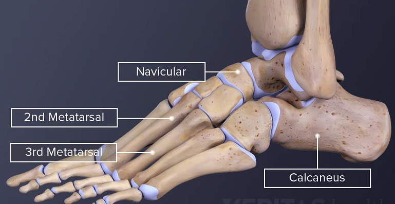 발 뒤쪽의 기초를 형성합니다. 종골은 발과 발목 피로골절의 약 21~28%를 차지합니다.