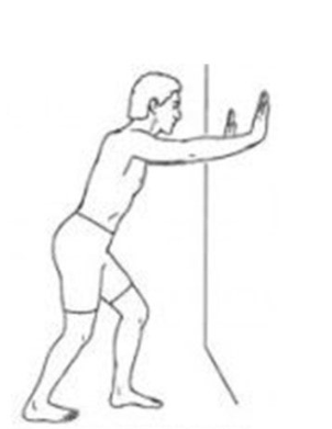 ▶ 뻗을 다리를 뒤로 놓고 발꿈치를 아래로 향한 채 벽에 기대세요
