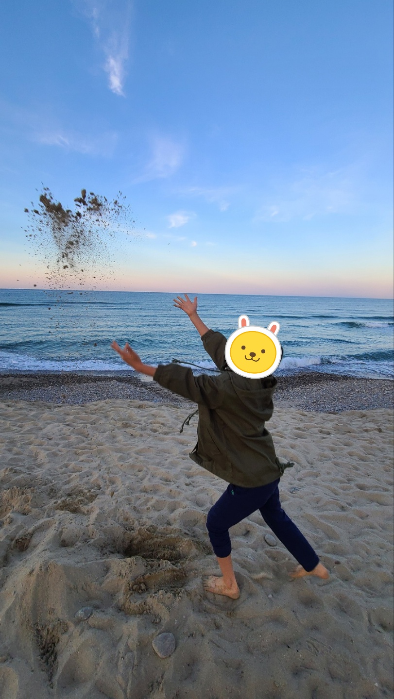 오늘은 파도가 잔잔하네요~역시 이쁜 딸은 여기서도 신나게 노네요