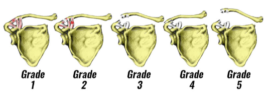 Grade3: 견봉쇄골, 오구쇄골인대 파열되어 쇄골이 위쪽으로 변위
