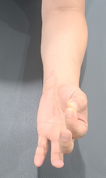 앉은자세 또는 선자세에서 팔꿈치를 90도정도 구부리고 전완 회외, 회내 운동을 합니다.
