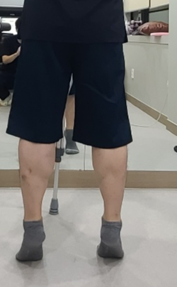 수술한 다리가 뒤에 있을때는 뒤꿈치를 밀어주면서 동시에 종아리, 허벅지에 힘주는것에