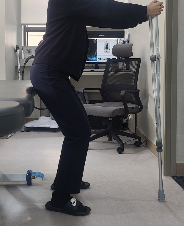 수술한 다리가 앞에 있을때는 체중이 정확하게 싣을수 있도록 신경을 써야하고,