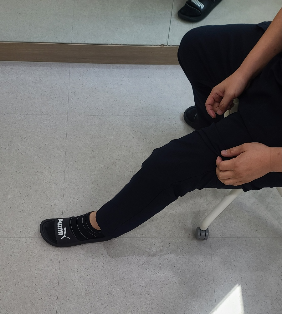 보행을 하기 때문에 신경써서 해주세요. 특히 수술한쪽 다리가 뒤에있고