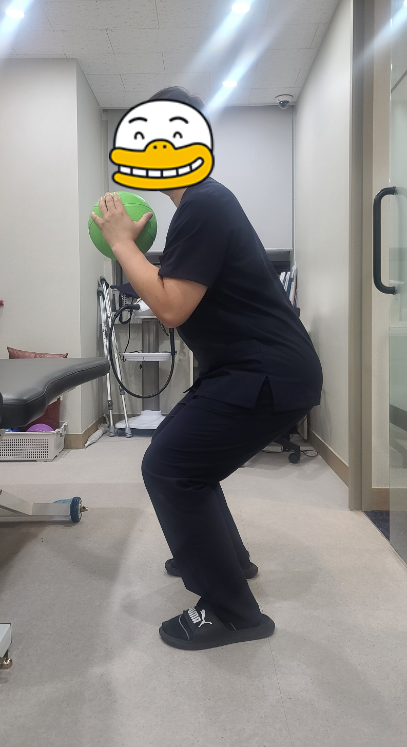 일반스쿼트가 부담스러우신 분들은 수술한 십자인대쪽에 부담이 덜가는 벽스쿼트를 먼저 하시는것을