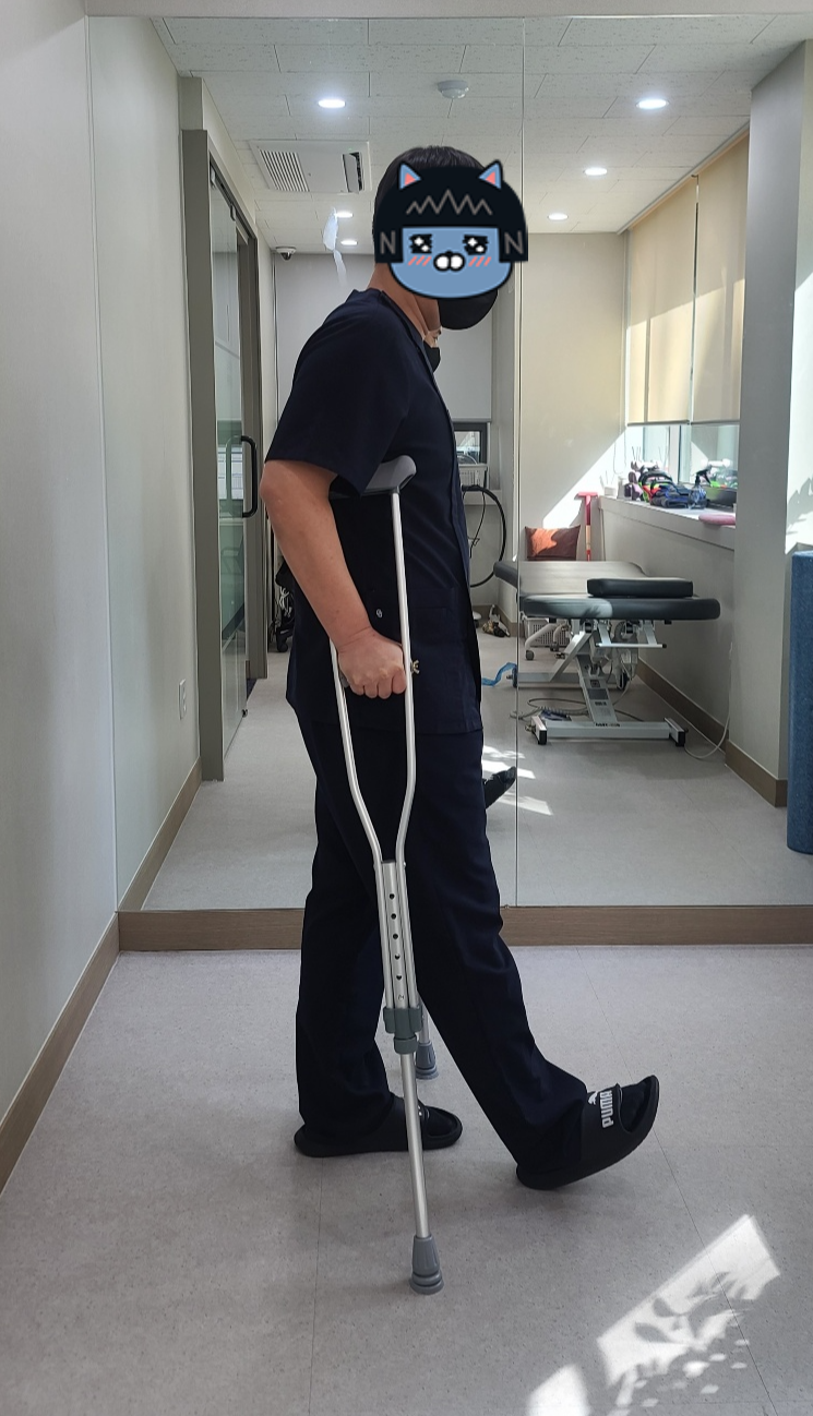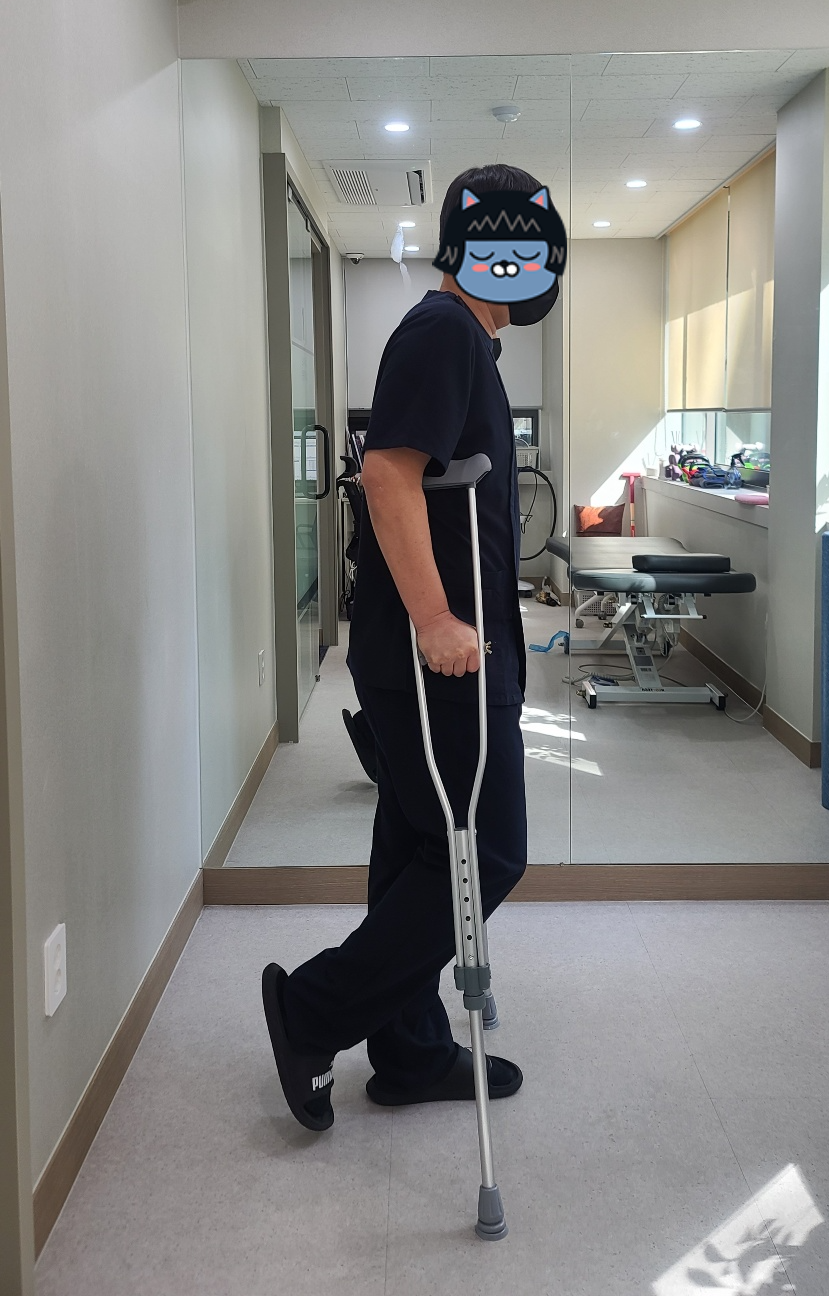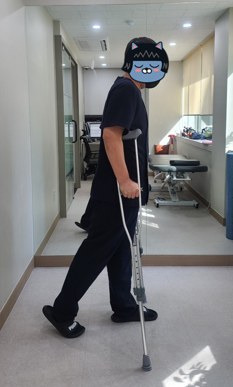 십자인대 수술후 6주까지는 목발을 짚어야 하기때문에 보행방법이 중요합니다.