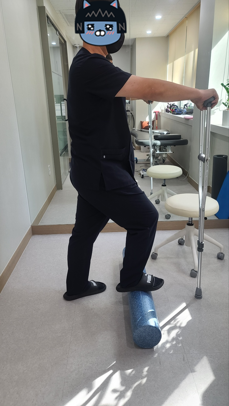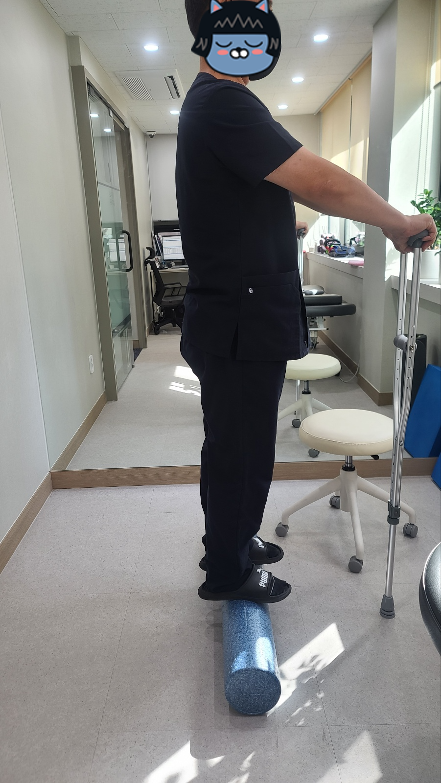 앞 편에서는 미니스쿼트를 알려드렸는데 적응이 되신분들은 목발을 떼시고 범위를 조금더 늘려서
