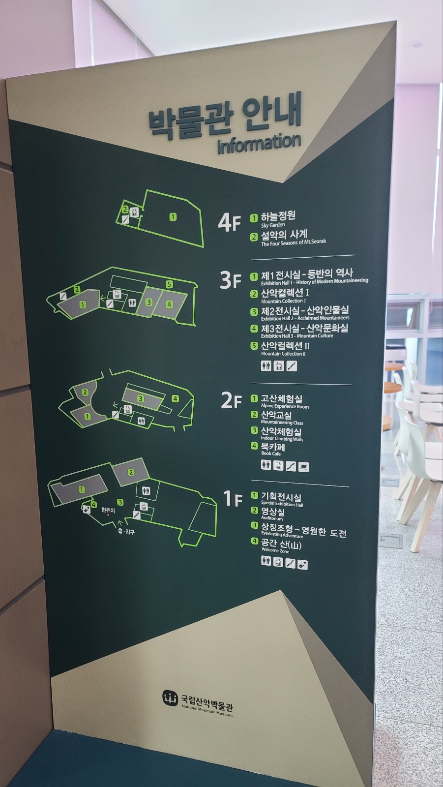 산악박물관은 1층~4층으로 되어있는데 1, 3층은 주로 전시실로 되어있고