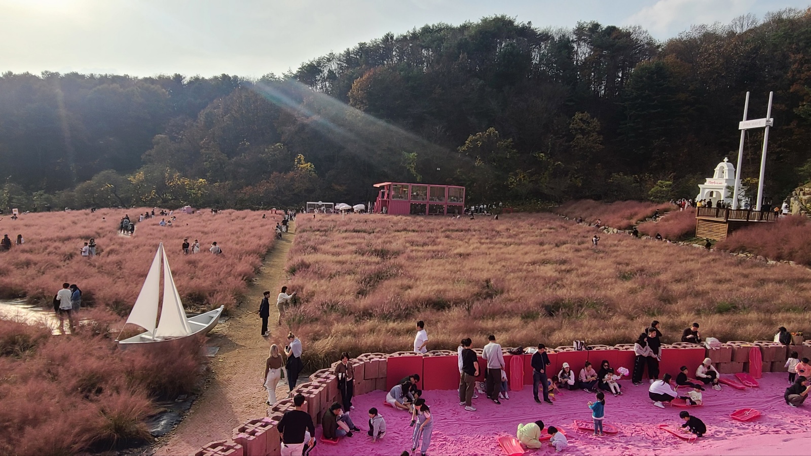 대기하면서 위에서 핑크뮬리를 전체적으로 보니까