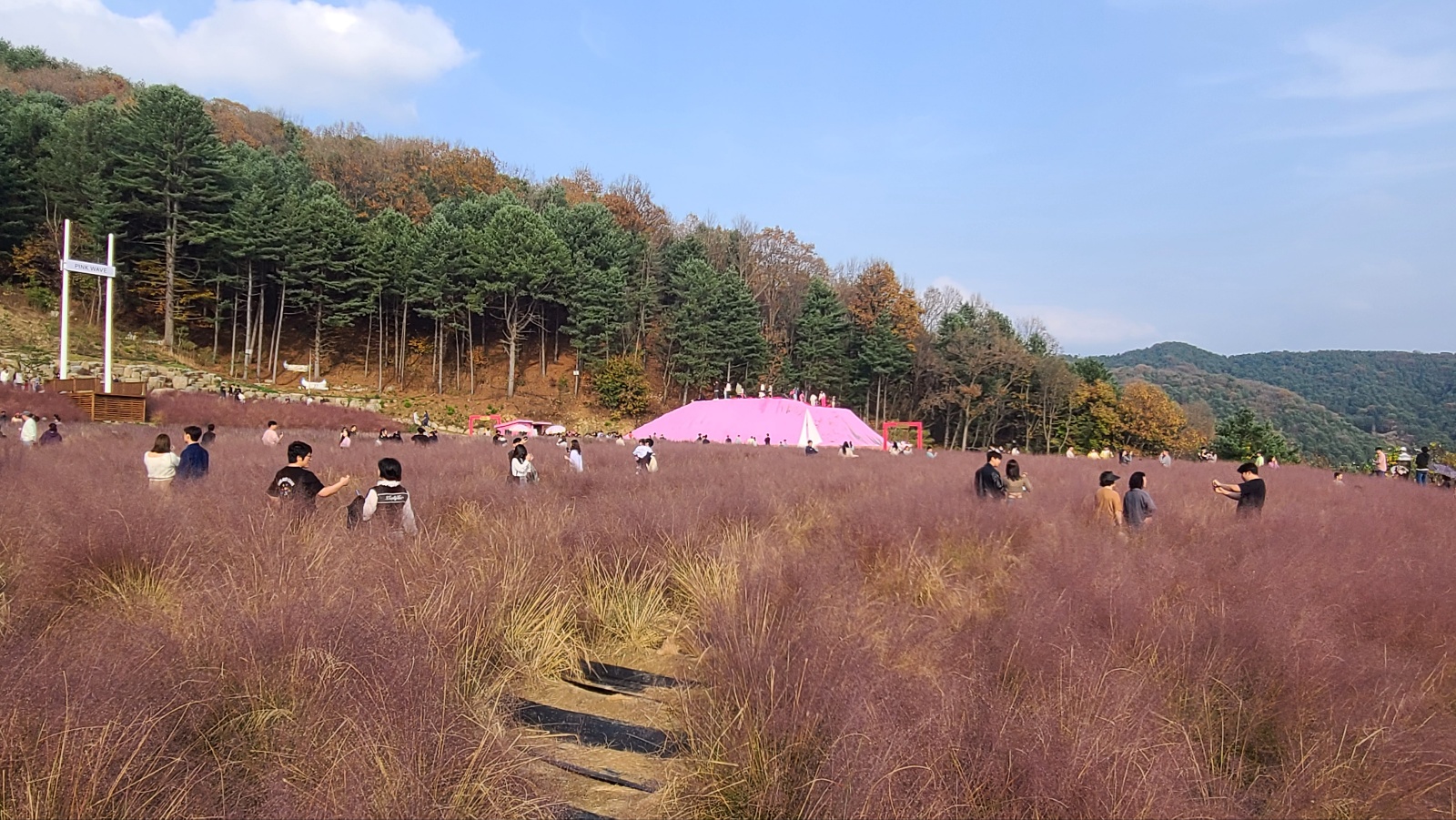힘들게 올라가다 보니 마침네 핑크뮬리정원이 나옵니다