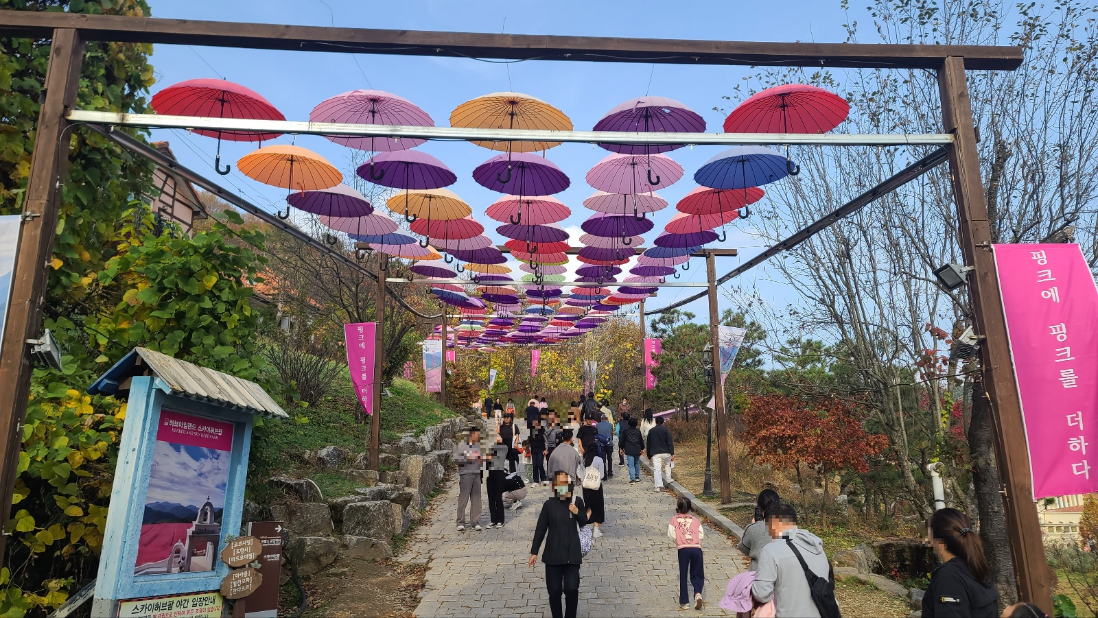 올라가다보면 여러가지 색의 우산이 전시되있는 길이 있는데
