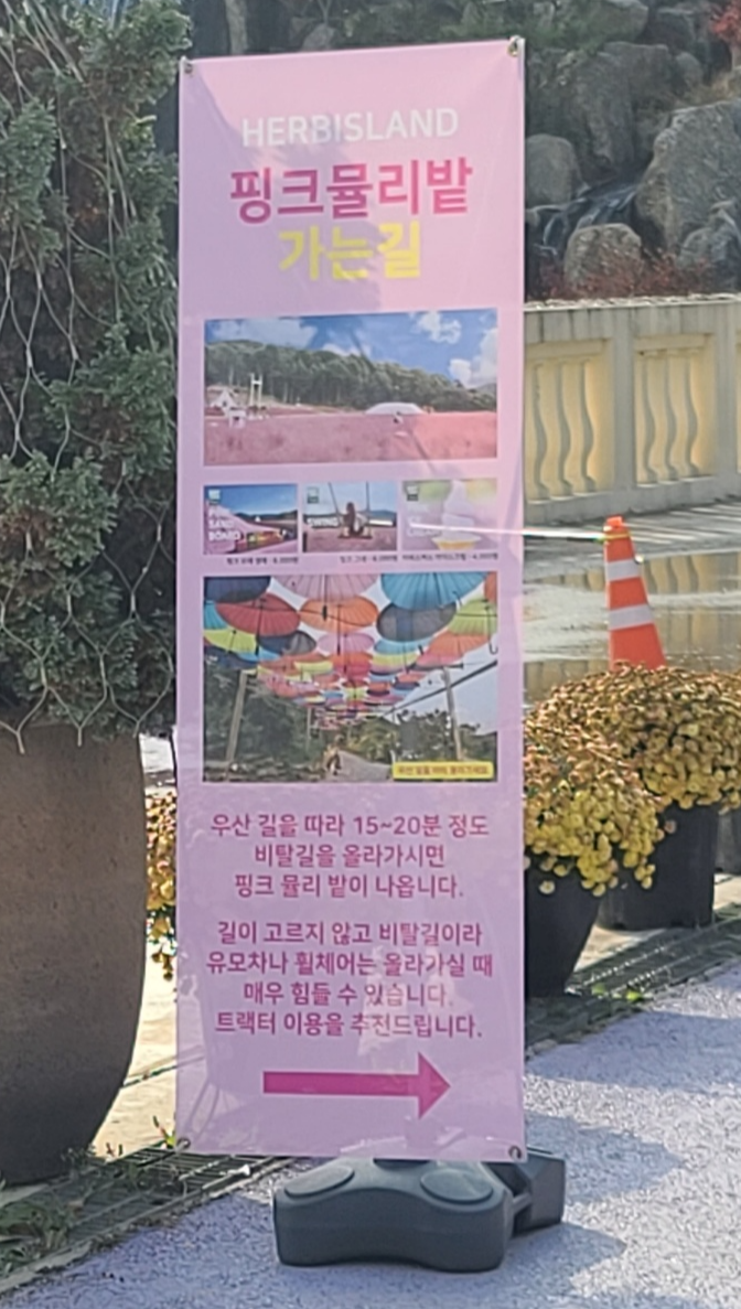 조금 둘러보다가 나왔더니 핑크뮬리 가는 곳이라는 안내판이 있습니다.