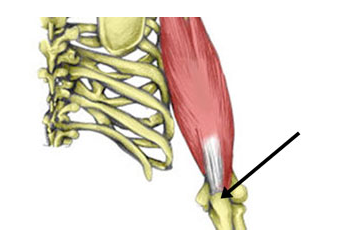 상완 뒤쪽의 삼두근 힘줄은 팔꿈치에 붙어 있습니다. 과도한 사용이나