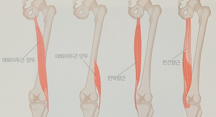 햄스트링은 대회 후면의 근육으로 대퇴이두근의 장두와 단두, 반건양근, 반막양근으로