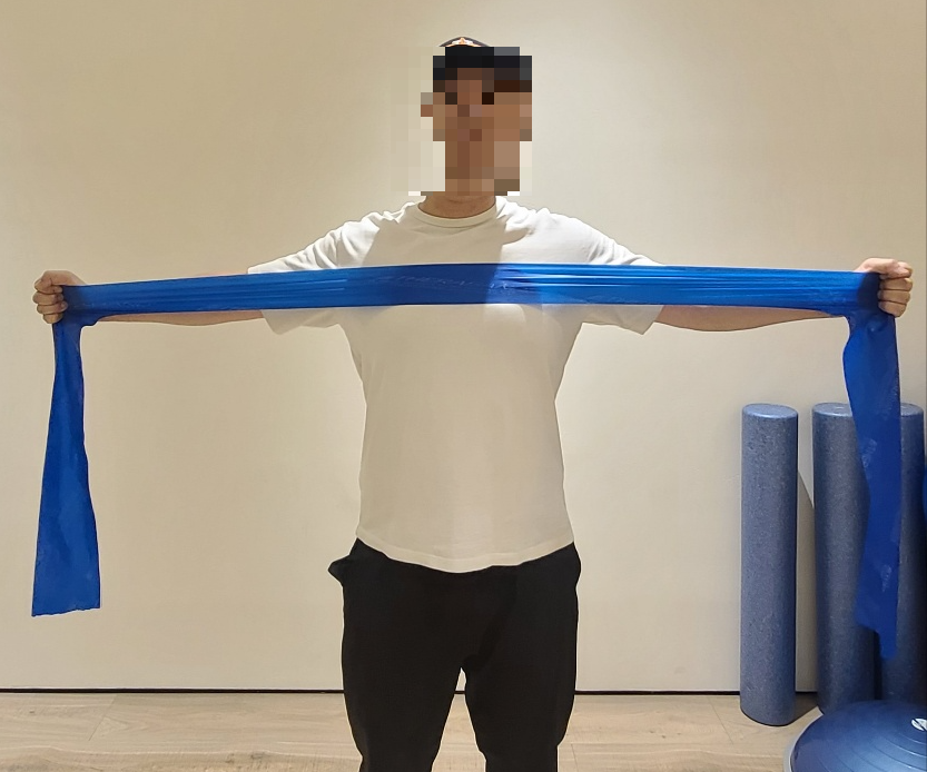탄력밴드 없이 모션만 먼저 시도한 후 다시 밴드를 잡고 하시면 됩니다.