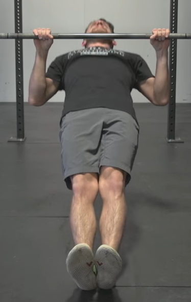 잡고 매달리는 자세를 취합니다. 자세를 유지하면서 가슴이 bar에 터치한다는 느낌으로 팔을 구부리면서 몸통을